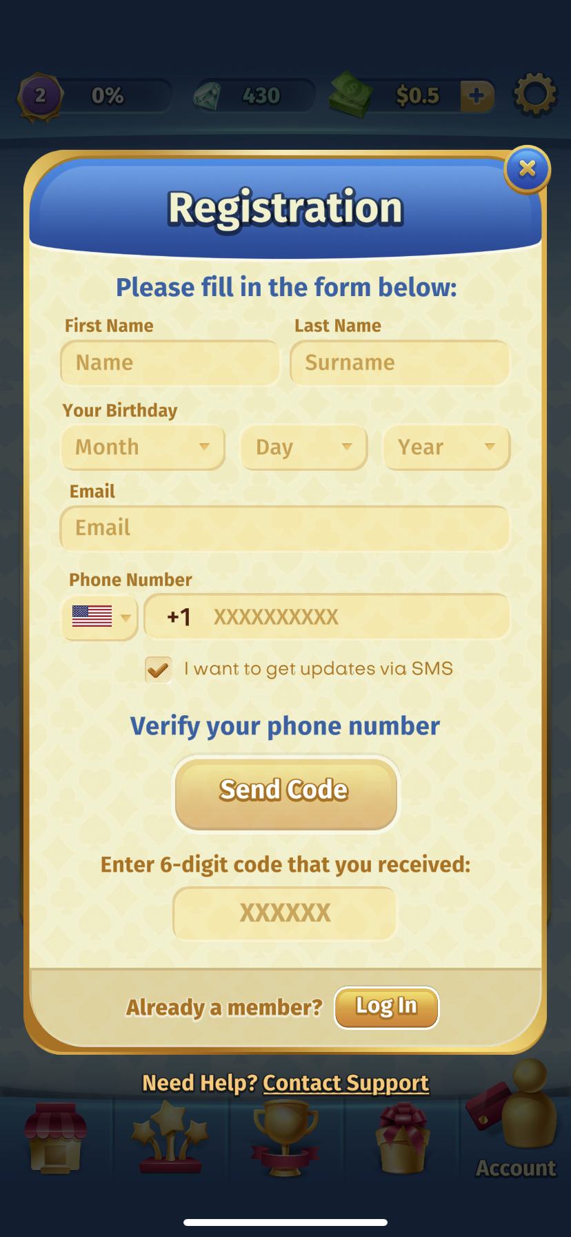 After filling in the details, you will get an SMS with a verification code to log into your account.
