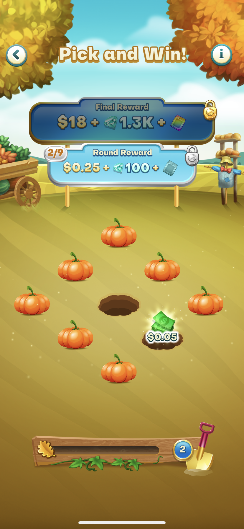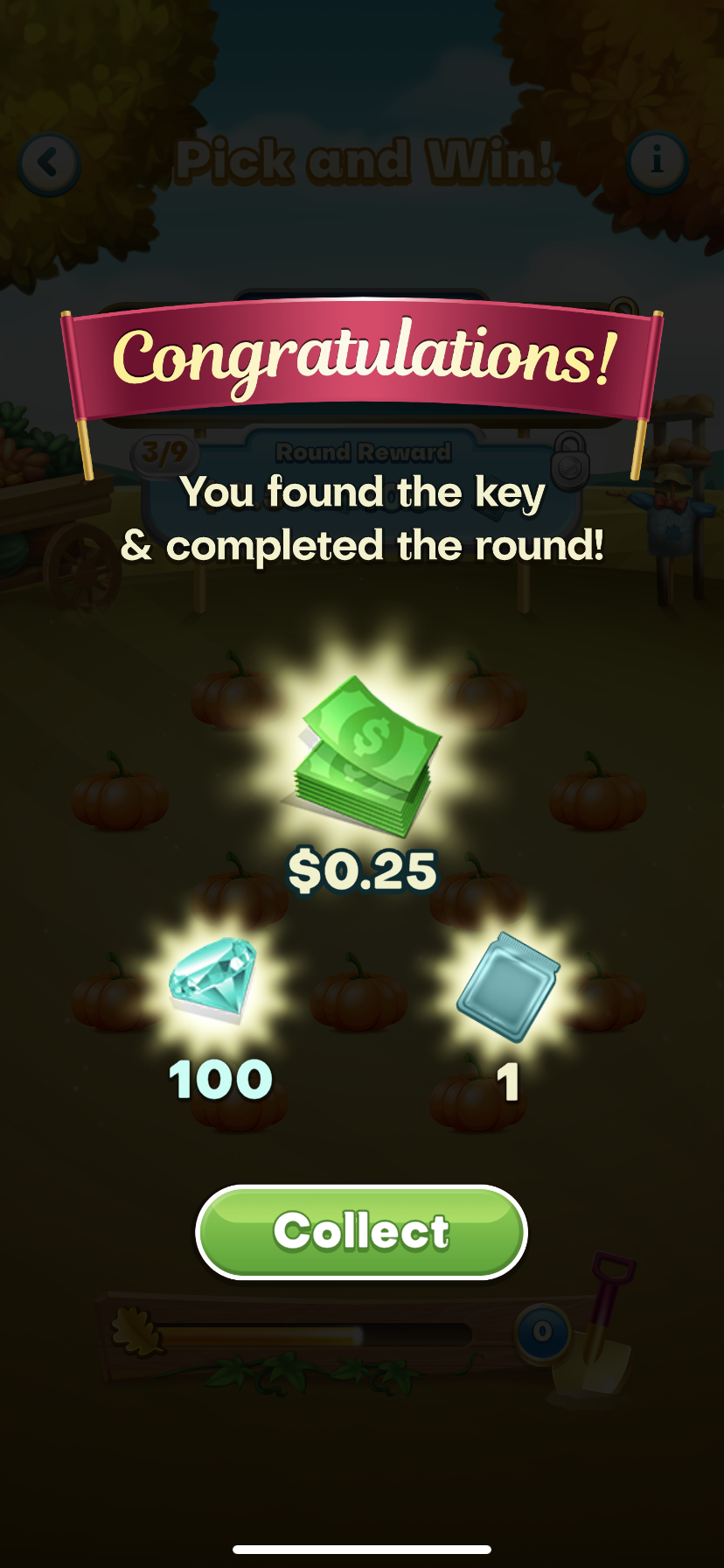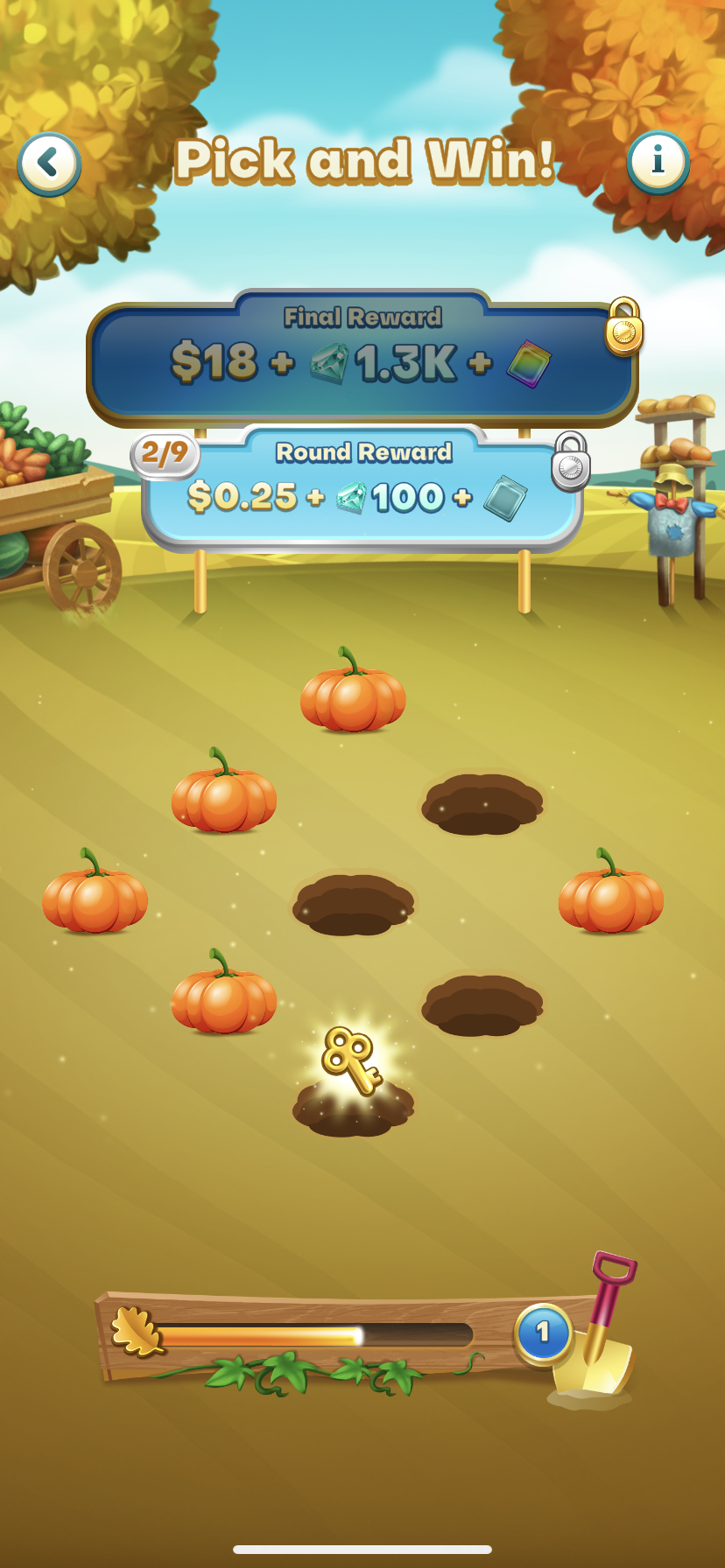 Each pick can benefit you with different prizes such as the key, bonus cash, gems, tokens, package or nothing.