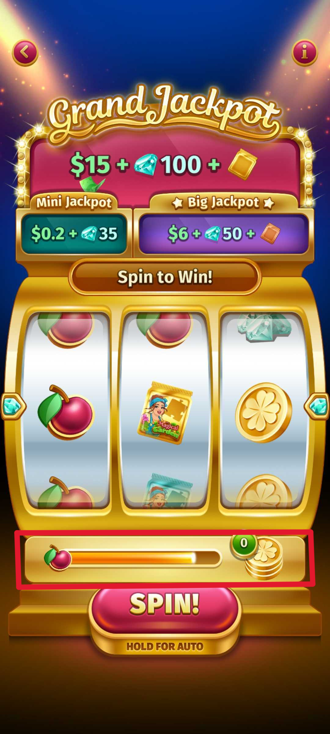 Once you collect enough tokens, you will complete the bar and get a spin.