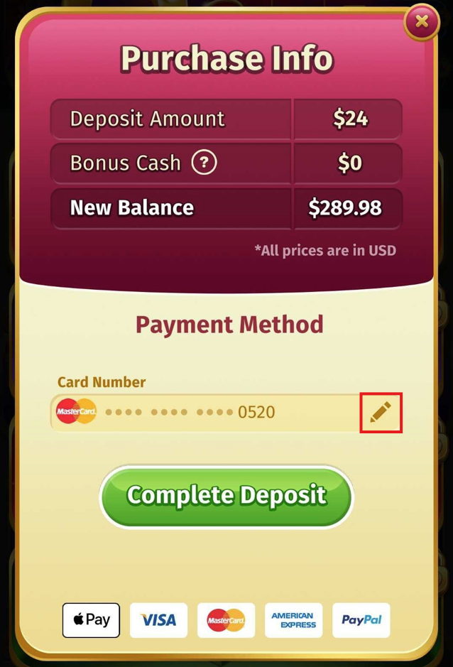 In order to update your credit card in the game, you'll first need to make a deposit.